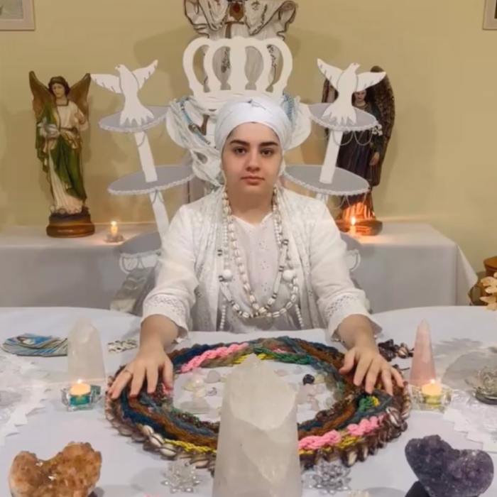 Desde jovem, recebeu o dom que atravessa gerações em sua família: a conexão com o mundo espiritual por meio dos búzios, cartas e rituais sagrados guiados pelos orixás e entidades de luz.